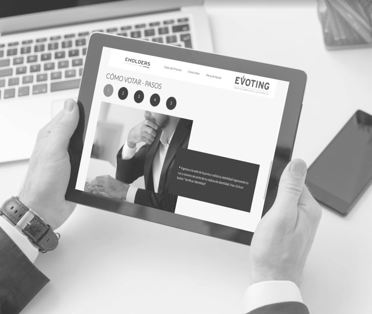 Paso 4: Una vez dentro de la plataforma, podrá visualizar sus datos personales, la información de sus representados, los datos generales del evento y la videoconferencia; que se mostrará integrada o, en el caso de dispositivos móviles, como un botón de "Entrar a la videoconferencia" que abrirá la aplicación de Zoom. Paso 5: Al ingresar a la videoconferencia, su micrófono estará silenciado de forma predeterminada. Para pedir la palabra, haga clic en el botón “Levantar la mano”, ubicado en la parte inferior de la pantalla.CÓMO VOTAR